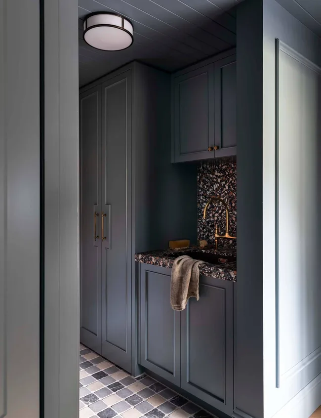 Concevoir un week-end est l’occasion de s’amuser avec les intérieurs. Lorsque ce n’est pas votre maison permanente, vous pouvez être plus audacieux que vous le feriez autrement tout en parlant en théorie sur certaines pratiques ternes. En ce sens, ce projet était un défi unique car les propriétaires de ski-mad l’utilisent à plein temps pour une grande partie de l’année, vivant et travaillant ici pendant des semaines, avec leurs jeunes enfants. «Il était très important pour nous de concevoir une maison loin de chez elle qui n’était pas seulement un week-end», explique Kate.