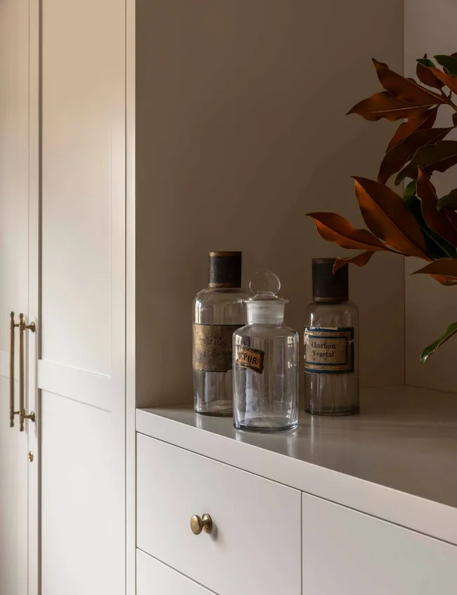 La résidence ne savoure pas non plus le stockage. «Avec mon expérience de la vie alpine, je sais ce que les skieurs ont besoin en termes de stockage de matériel de ski», explique Kate. «Il est très volumineux et nécessite des soins spécifiques avec des placards de séchage adéquats.» Le rangement de la chambre est abondant – il n’y a pas de vie dans une valise ici. Les placards verrouillables signifient également que les propriétaires peuvent louer l’appartement, s’ils le souhaitent, sans retirer leur propre équipement.
