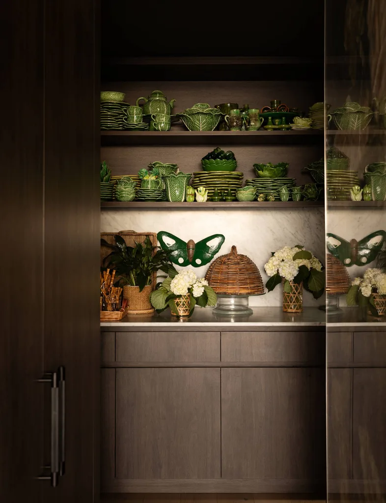 une bibliothèque séparée ; une cuisine centrale, une salle à manger et un espace cocktail mènent à un salon formel ; et à l’autre extrémité se trouve une chambre généreuse, un dressing et une salle de bains. Derrière la cuisine se cachent un garde-manger et une buanderie de majordome.