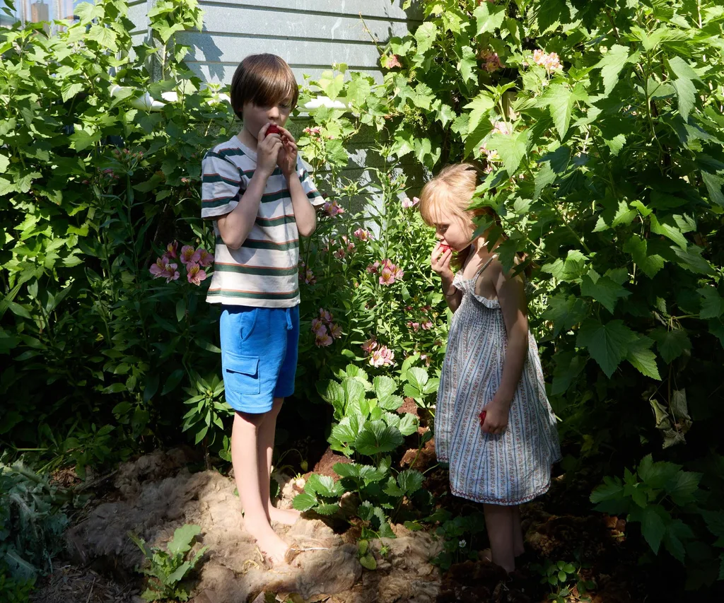 « Au début, ils adoraient ça, semer, attendre et surveiller que les graines germent et poussent dans le sol. Ils l’arrosaient et le désherbaient et aiment vraiment cueillir les produits, mais ils ne sont pas très soucieux de l’entretien. »