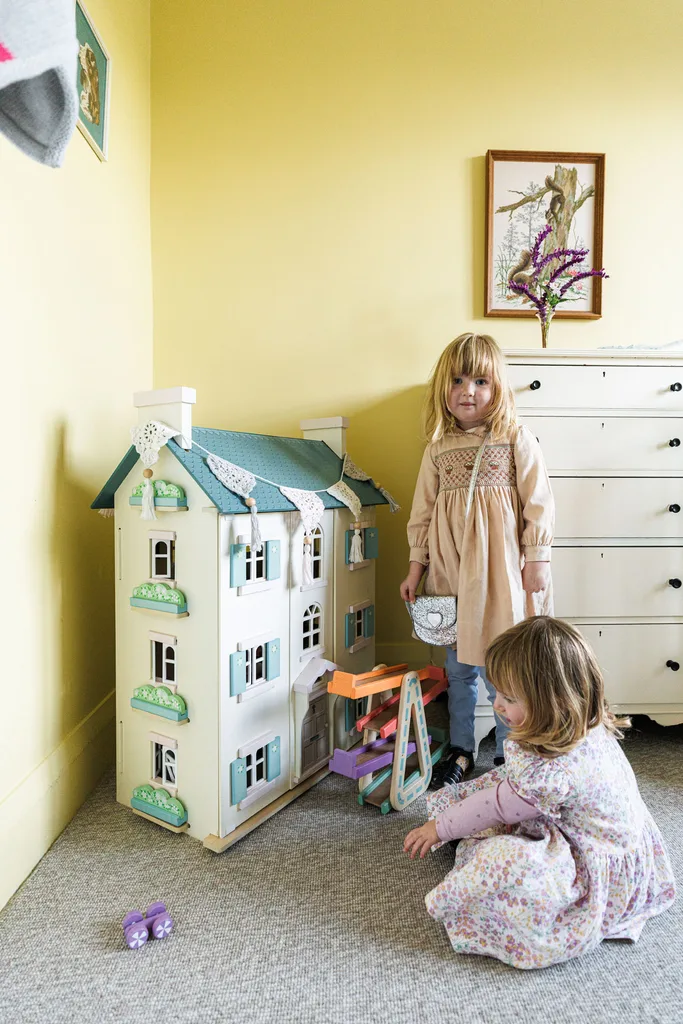 Et les cadres de fenêtre verts? «Nous avons commencé à les peindre et nous avons ensuite reçu une très vieille photo de la maison et avons vu que les fenêtres étaient vertes à l’époque aussi», explique Chrissy. «Cela a semblé fortuit.»