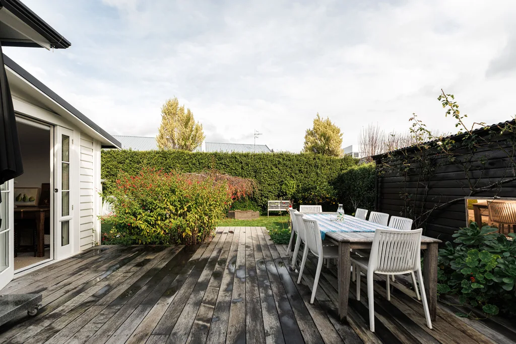 La propriété: Un cottage Nelson des années 1920 112 m² avec trois chambres, une vie en plein air, une salle de bain et une buanderie conjointes, ainsi qu’un Lean-to Used for Chrissy’s Studio et de magasiner pour son entreprise en ligne.
