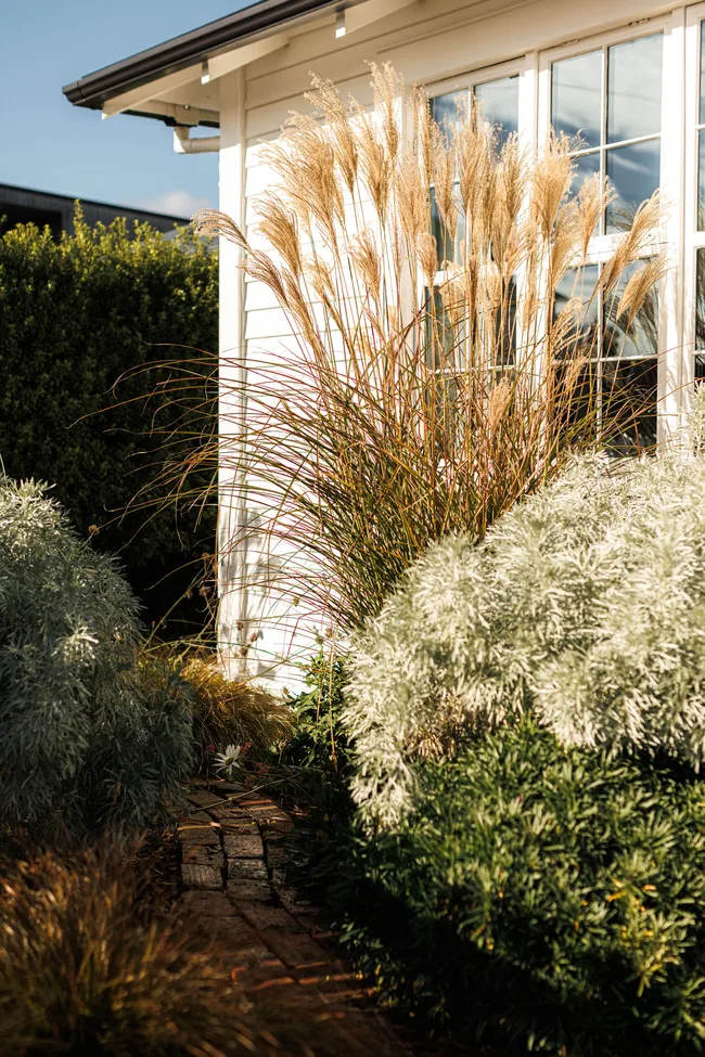 La minuscule empreinte de la maison est équilibrée par un généreux espace extérieur. Les propriétaires précédents ont aménagé le dos et ajouté un grand pont Kwila; Les Irvines ont tourné leur attention vers l’avant, où ils ont pris la décision audacieuse de retirer les plantations traditionnelles de Golfball Pittosporums et de roses standard «épineuses» pour faire place à quelque chose de spécial.