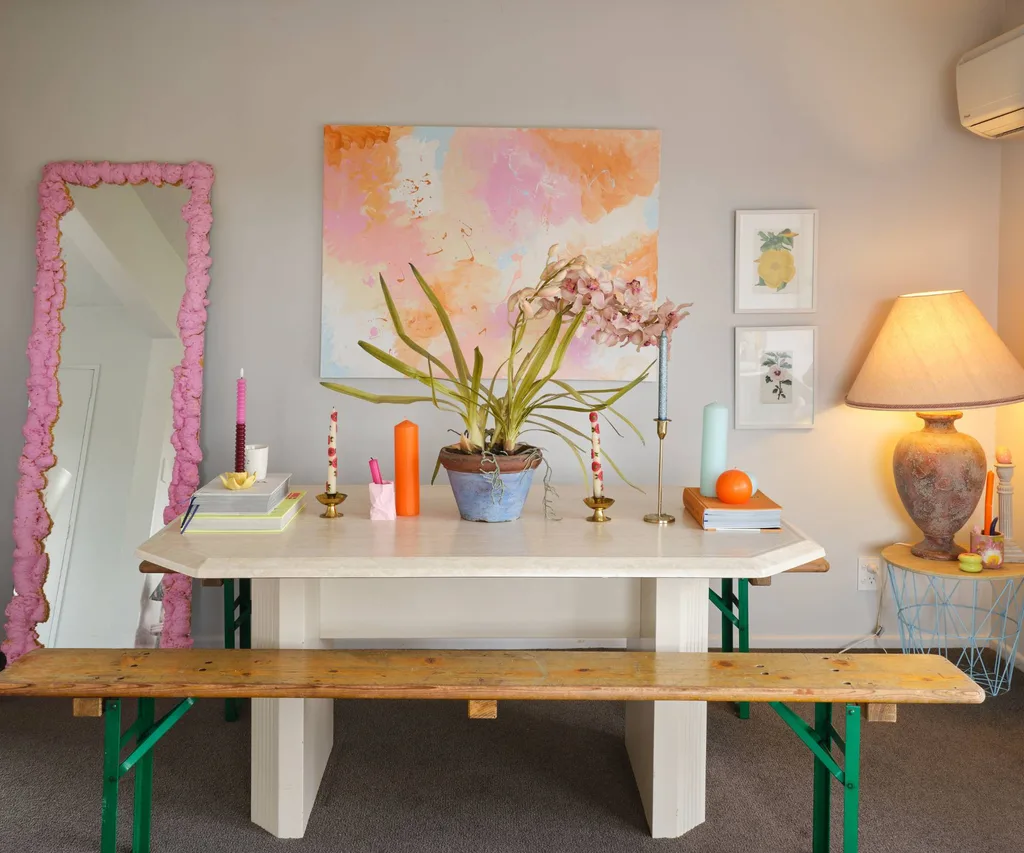 Ce qu’elle trouve le plus intéressant, dit-elle, c’est la façon dont la vie de style d’appartement semble déclencher une licence pour être créative, pour hausser les règles de conception et de conception arbitraire et embrasser une esthétique jeune et vibrante – qui, pour elle, est le plus évidemment exprimée par la couleur.