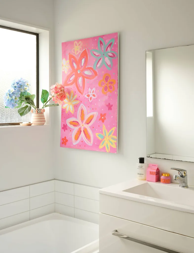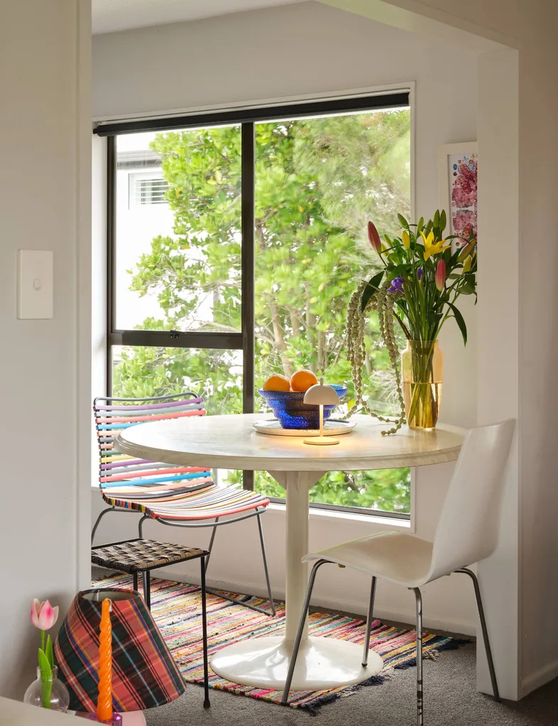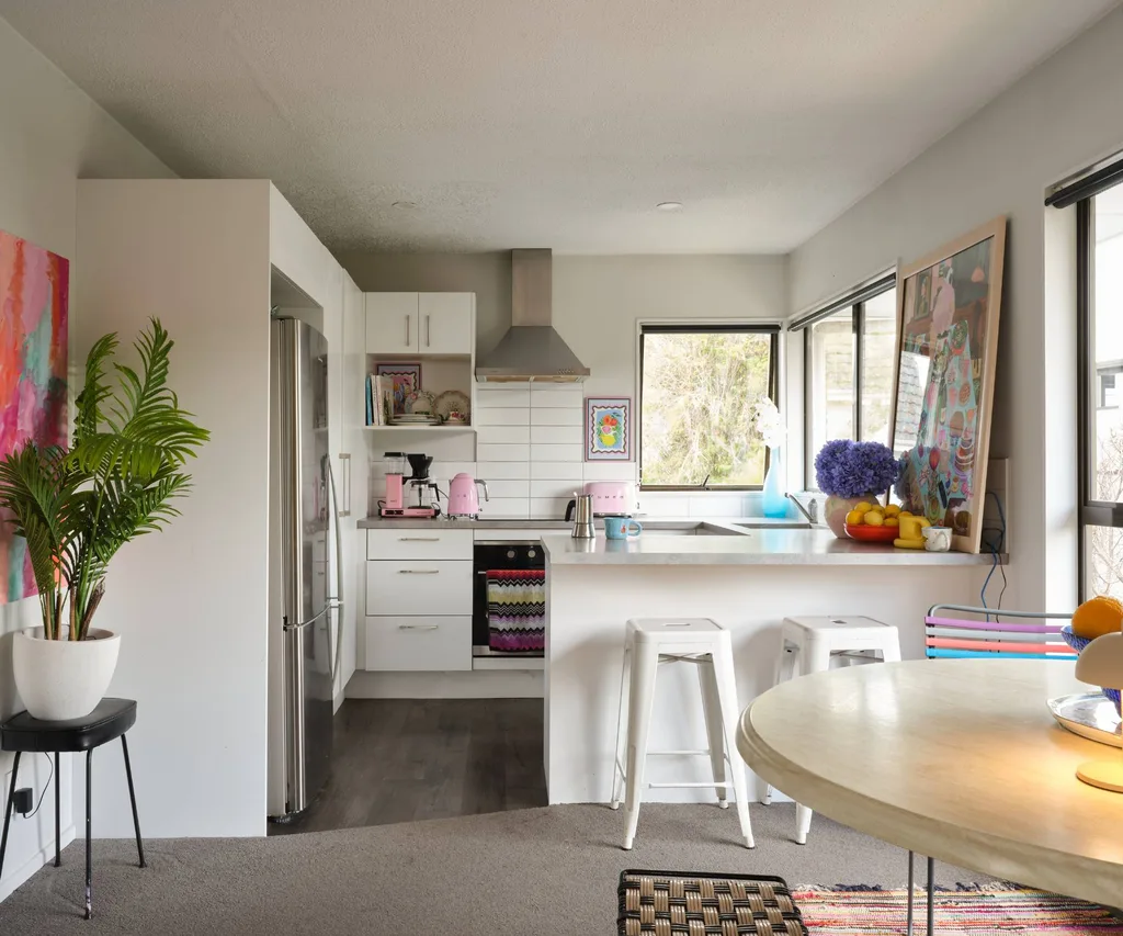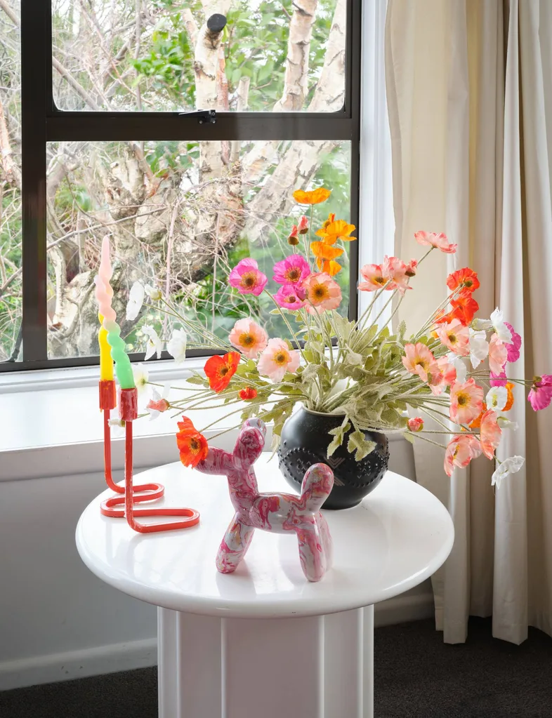 Coiffure à cheveux et co-fondatrice de la marque de produits Hair Brand Hair Candy, la Toscane a canalisé sa créativité pour transformer une maison de ville en canneaux en blanc à Christchurch en un kaléidoscope de couleur stimulant l’humeur.