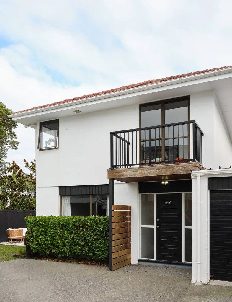 La propriété: La maison de ville de trois chambres et une salle de bain rénovée des années 1970 à Redcliffs, Christchurch.